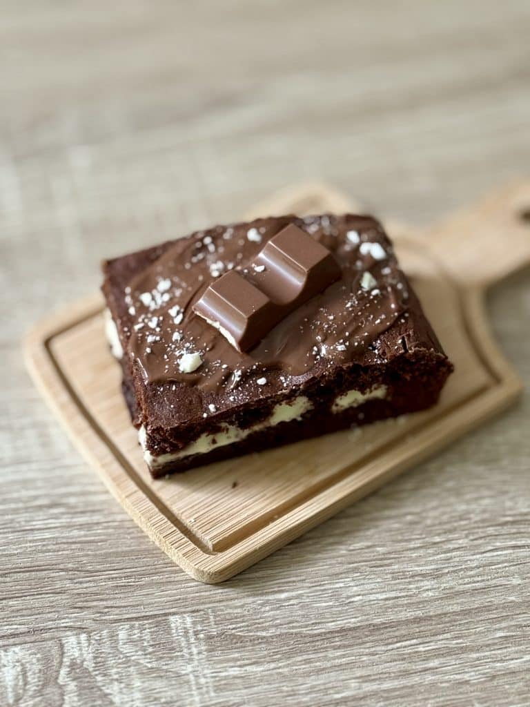 Brownie chocolat noir riche et fondant, garni de barres de Kinder Maxi. Sur le dessus, une belle couche de pâte à tartiner chocolat-noisettes et un éclat de Kinder pour un final ultra-gourmand. 🍫