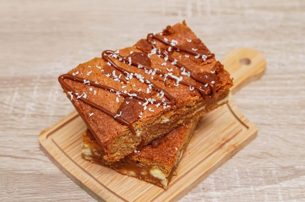 Une alternative gourmande au brownie : Nos blondies sont préparés artisanalement, avec une base douce et fondante, relevée par des inclusions gourmandes qui varient selon la saison et les envies. Leur saveur plus légère et subtile séduit aussi bien les amateurs de chocolat que ceux qui préfèrent des desserts moins intenses.
