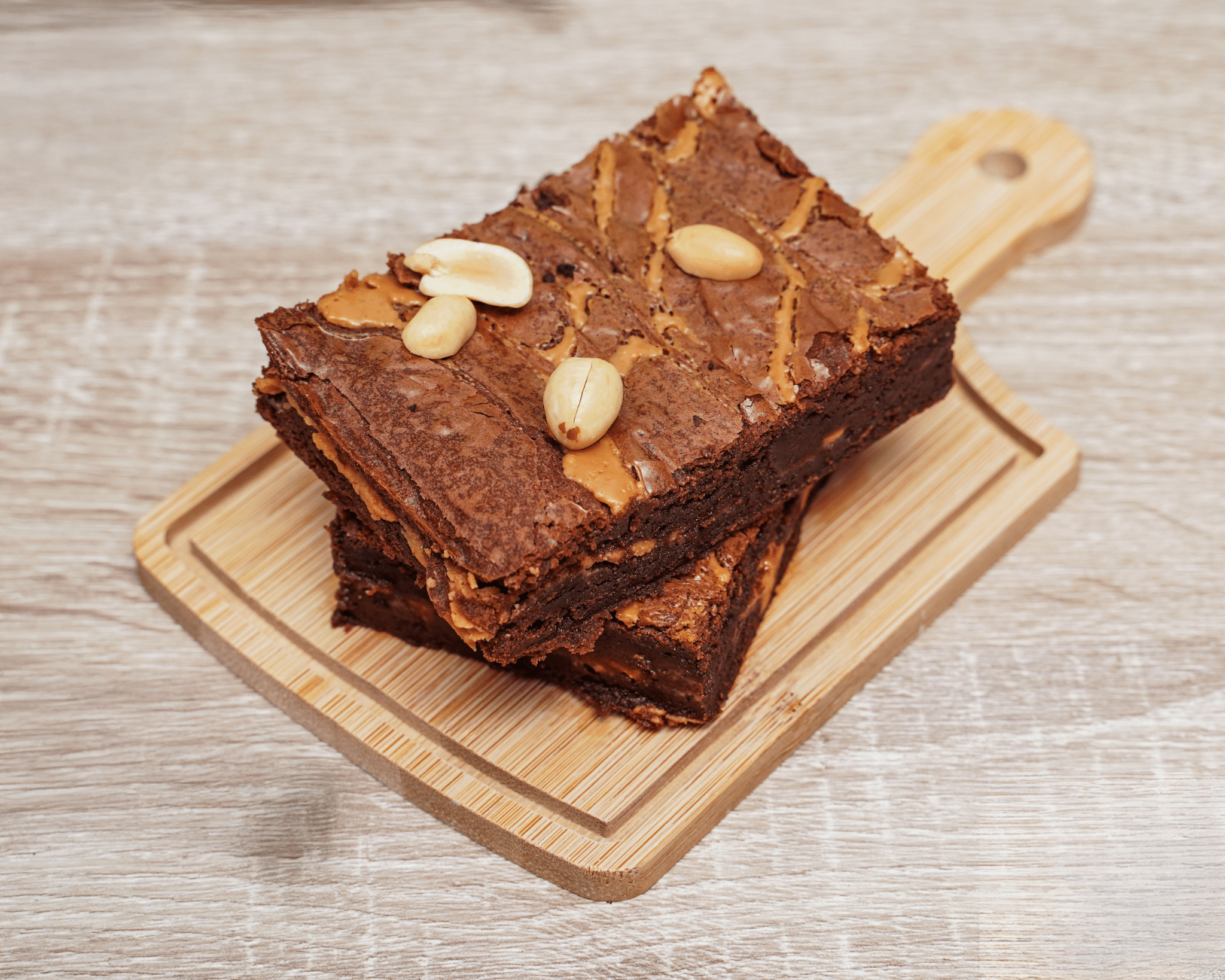 Notre brownie au chocolat noir 🍫 et pâte de peanut butter vous plonge dans une expérience gourmande presque aussi addictive que les célèbres Reese’s 😏.